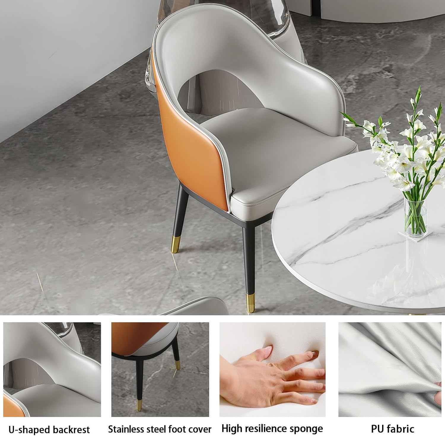 Our conference room negotiation table sets not only as a conversation table in an office reception room, your desk and chair set can also be used as a coffee table, dining area in the kitchen or as a conference table in a small office. Product parameters: * Product name: Negotiation reception table/office desk and chair set/coffee table and chair set/round dining table set/kitchen table and chair/table and chair combination * Features: simple, space-saving * Color: refer to the picture * Bracket structure material: metal * Table shape: round * Tabletop material: rock board * Tabletop diameter: 60cm/23.6in, 70cm/27.5in, 80cm/31.5in * Table height: 75cm/29.5in * Chair material: PU leather fabric, sponge filling * Chair total height: 80cm/31.5in * Packing method: assembly * Packing list: 1×table, 4×chairs Warm Tips: 1. Size Description: The product is completely measured by hand and may have an error of 1-3 cm. Please refer to the actual items received. 2. Picture description: The product is real. Due to problems with light, angle, display, etc., there may be slight chromatic aberration, please forgive me.
